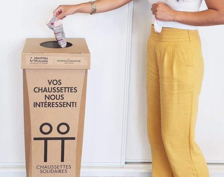Collecte de chaussettes usagées ou orphelines dans les agences Identités Mutuelle